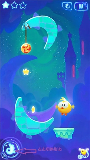 有个小难点,就是点击屏幕左下角,直接切换角色形态,接着割断绳子。
