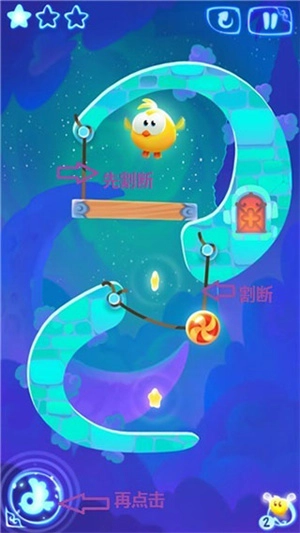 这是最简单的一个关卡,玩家只需按照提示划断上方的绳子,即可顺利通关。
