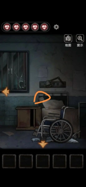 5、(轻症病房2011-镜子)点击床头柜,使用【口红】涂抹刻痕。
