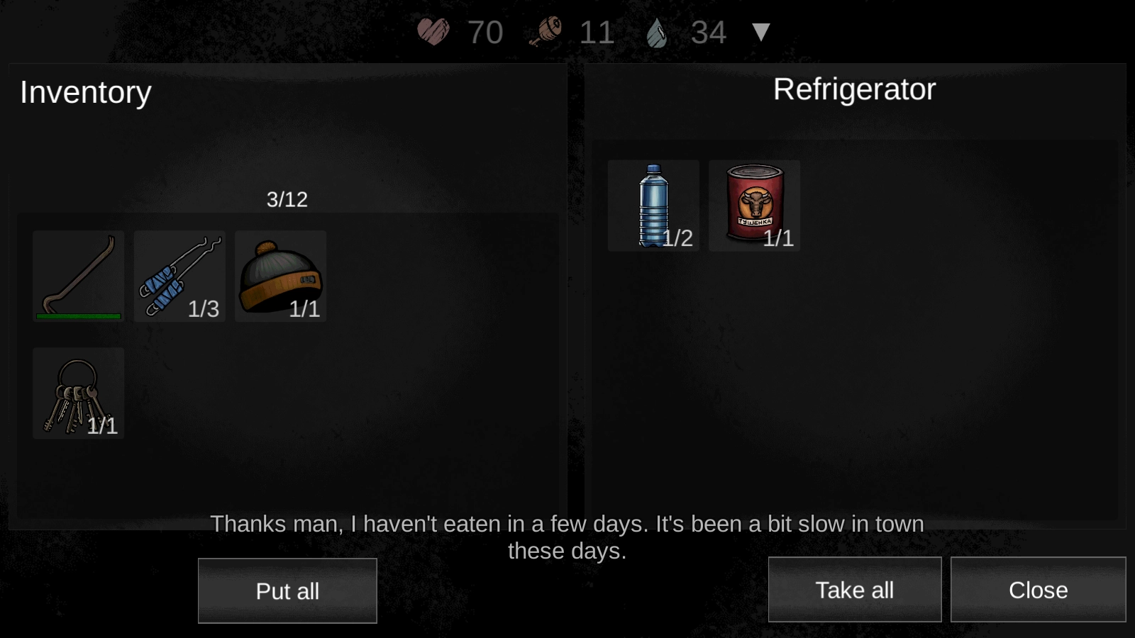 6、我们能够在场景里到处收集资源,靠近资源后点击就能打开背包,点击TAKE ALL就能把所有资源都放进背包里。
