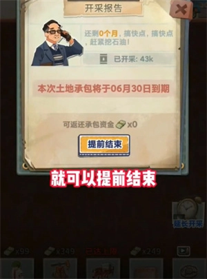 一开始会有一个新手教程引导,之后就进入核心流程:开采石油、售卖石油,如此循环往复,每半年为一个结算周期,结算后获得收益,接着用收益投入技术开发,随后再次重复开采和售卖石油的环节,期间还会随机触发各类事件。