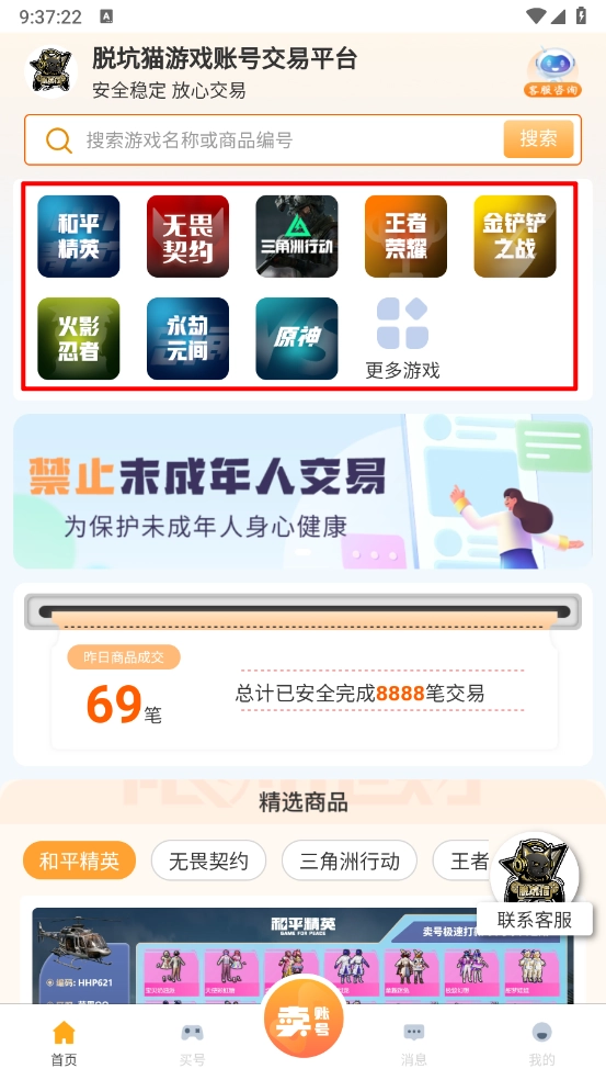 脱坑猫是国内专业的账号交易平台,无论是想把闲置账号变现回血,还是想低价挑选心仪账号,在这里都能得到满足。平台全面提供账号交易、账号买卖、鉴号估价等服务,还有专业的收购保障,不管是资深老玩家还是新手,都能在这儿找到划算又靠谱的交易。
