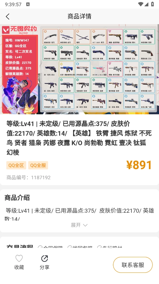 5、点击进入就能查看对应的商品详情页面,点击“联系客服”就可以进行购买了。