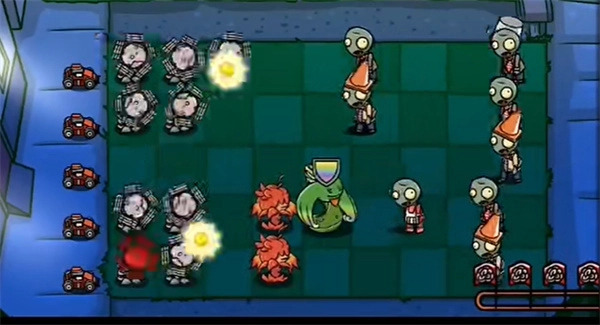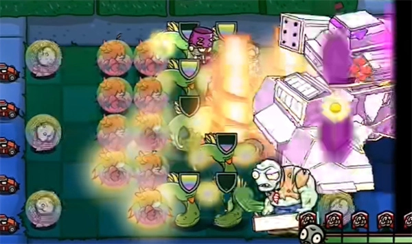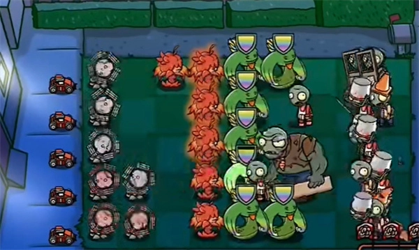 2、僵尸来袭后,立刻种下焰皇花,能消灭大量僵尸。