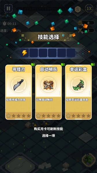 1、单手即可顺利畅玩,轻松简单的肉鸽割草玩法。