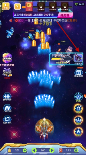 2、持续射击不仅能让你不断提升自身火力,还能加快子弹射出的速度,从而获取更多奖券。