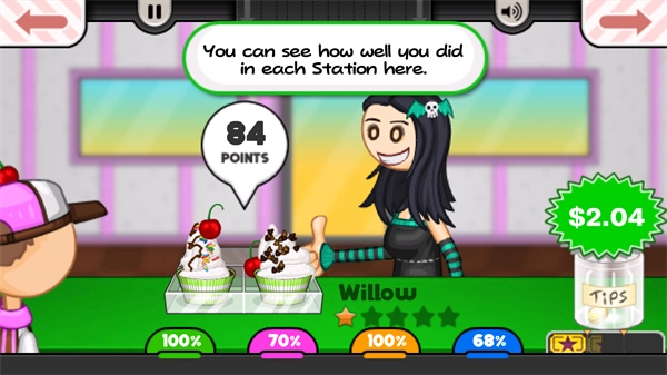 老爹纸杯蛋糕店hd英文版,即高清版本,其画质格外清晰。玩家可直接进入店铺开启经营之旅,每日工作十分简单,就是制作美味蛋糕、争取快速完成订单。每一步操作都配有教程指导,只要操作不出错,就能获得很高的评分。