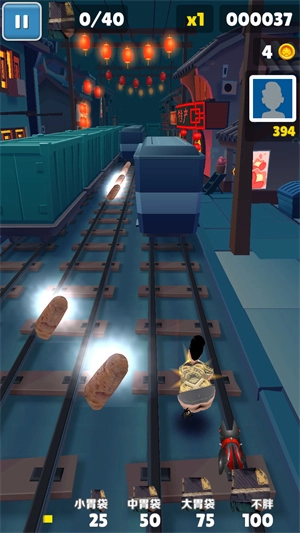 完成比赛后会得到一个分数,跑酷的距离越远,分数就越高。
