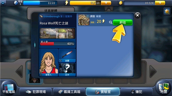 1、打开,跟随新手引导开始破案。