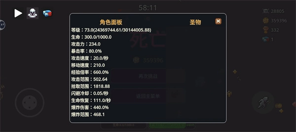 2、接下来要优先提升宠物的攻击速度和攻击力,这样能让宠物快速消灭小怪;之后再把拾取范围提高到150,以保障升级所需的资源获取。
