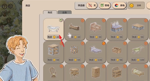 2、进入商店之中,就能购买不同的家具,比如浴缸。