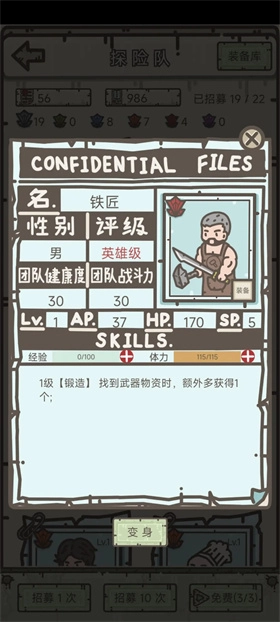 ②当铁匠铺解锁22个成员时,将时之沙(远征掉落)进行存档;若未刷出铁匠和药剂师,则不进行探索与生产,直至营地毁灭后重新开启,重复此过程直到刷出这两个角色。