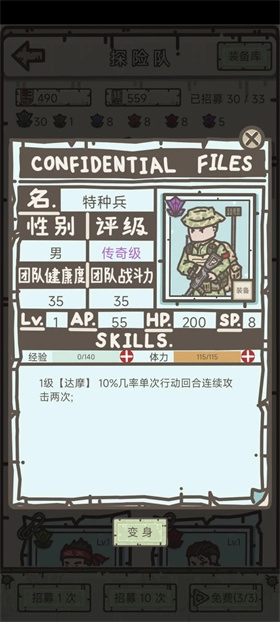 ③花了257天把特种兵刷到直接满级,我是通过逆转算法(远征掉落)把铁匠的经验转给他,逆转算法多出来的时候,就也把药剂师升级了,阵容配置是7级神农氏+7级特种兵+7级药剂师