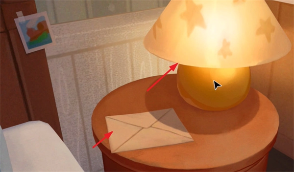 快速点击台灯,它就会直接亮起,同时还能打开旁边的一封信。