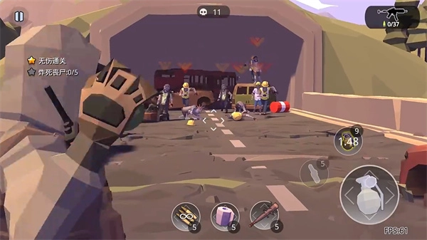 3、还可以直接点击右侧的道具,像手雷这类,就能一下子炸飞很多僵尸,伤害非常高。