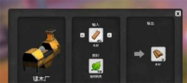 4、只需把收集到的特殊木材放进锯木机里,再使用树叶,就能让机器运转起来,稍作等待就能得到稀有木材。