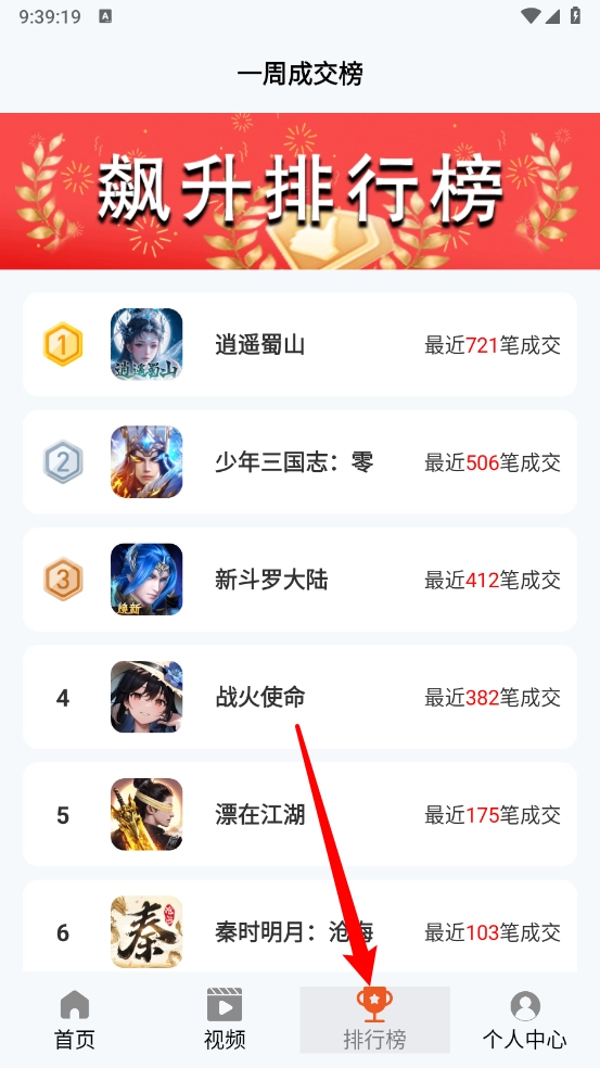 5、打开"排行榜"板块,可以查看交易排行。