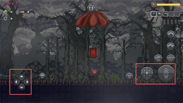 左下角的按键可操控机器人灵活移动,右下角的按键则涵盖攻击、跳跃等功能。