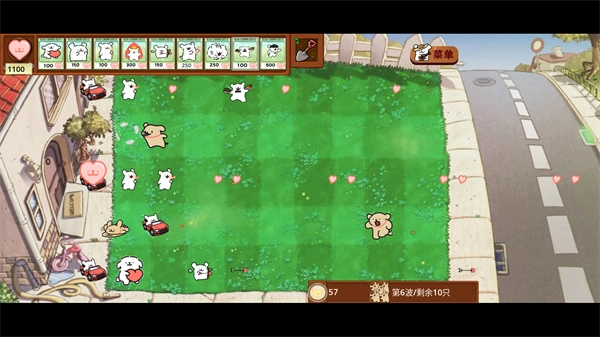 1、进入后直接开始闯关,在关卡后方种植爱心小白,它会持续产出爱心,记得及时收集。