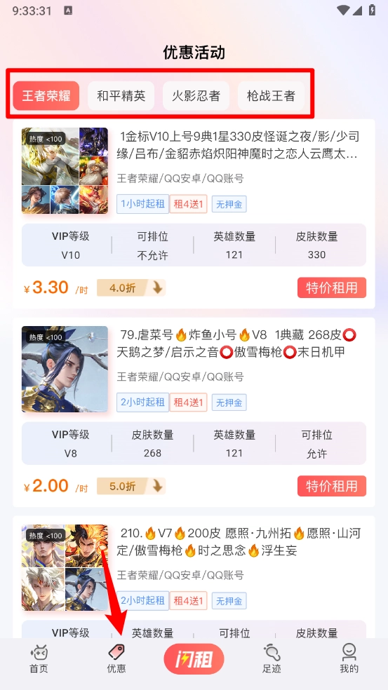 3、还可以在"优惠"板块,根据进行选择。