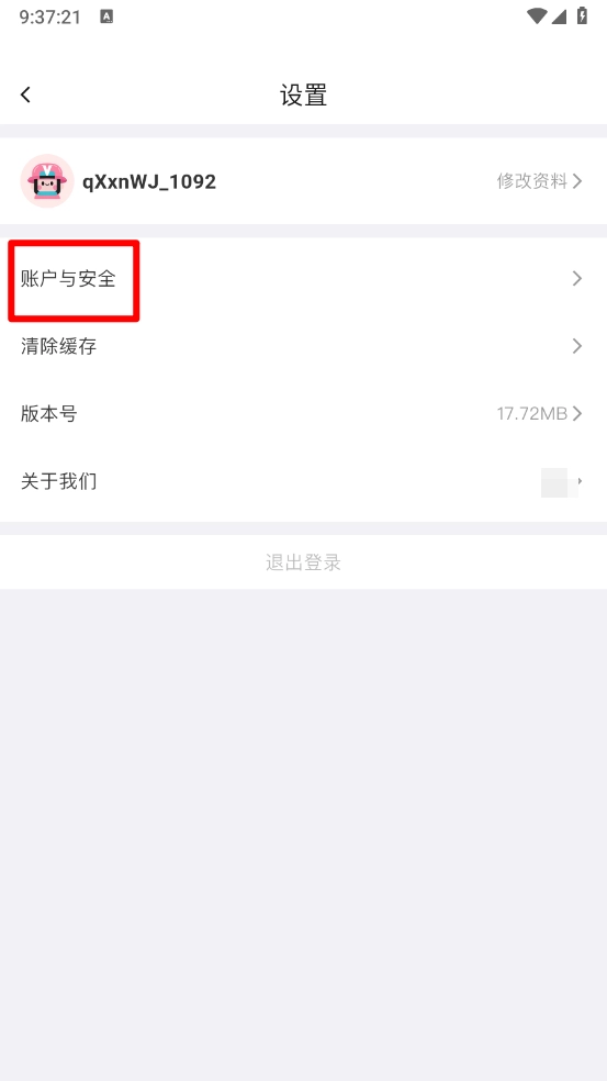 3、如图,选择"账号与安全"。