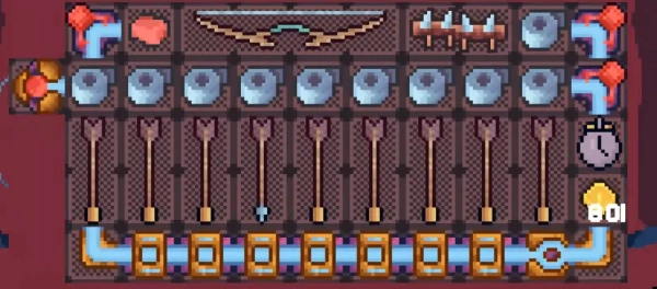 2、弓箭流派:围绕弓箭构建核心玩法,主打“万箭齐发”的爆发输出路线!拉弓上箭——使用弓箭得遵循“箭”在“弓”前的物理规则!弓箭流的输出能力不取决于武器本身的数值,关键看右侧格子的数量——不管是留着空格子,还是装上各种箭矢,格子数量越多,弓箭的攻击威力就越强劲。