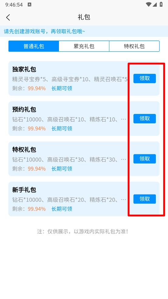 5、涵盖多个礼包资源,点击右边的"领取"即可。