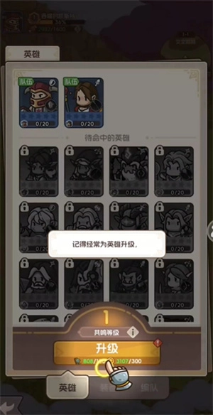 5、可以随时给英雄升级,等级提升后,英雄的实力也会相应增强。