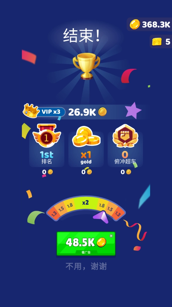 5、到达终点后,眼前会出现多块标有数字的板子,冲过终点后将依据停下的位置获得相应奖励。
