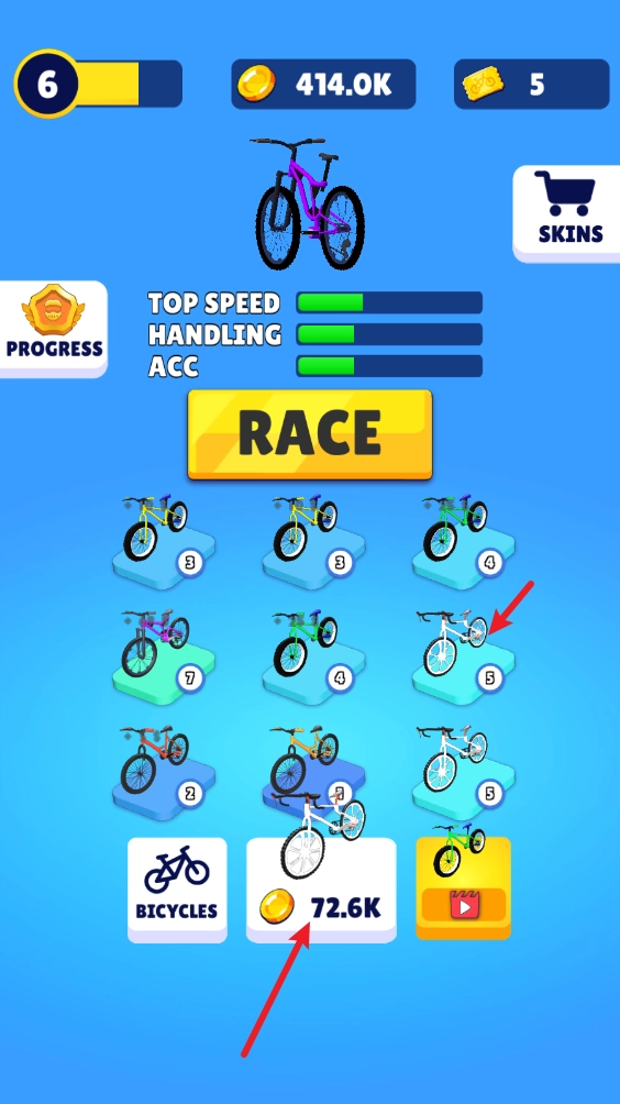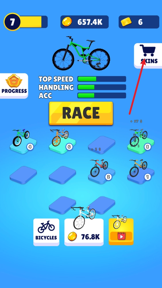 2、进入之后就可以切换到不同类型的自行车皮肤。