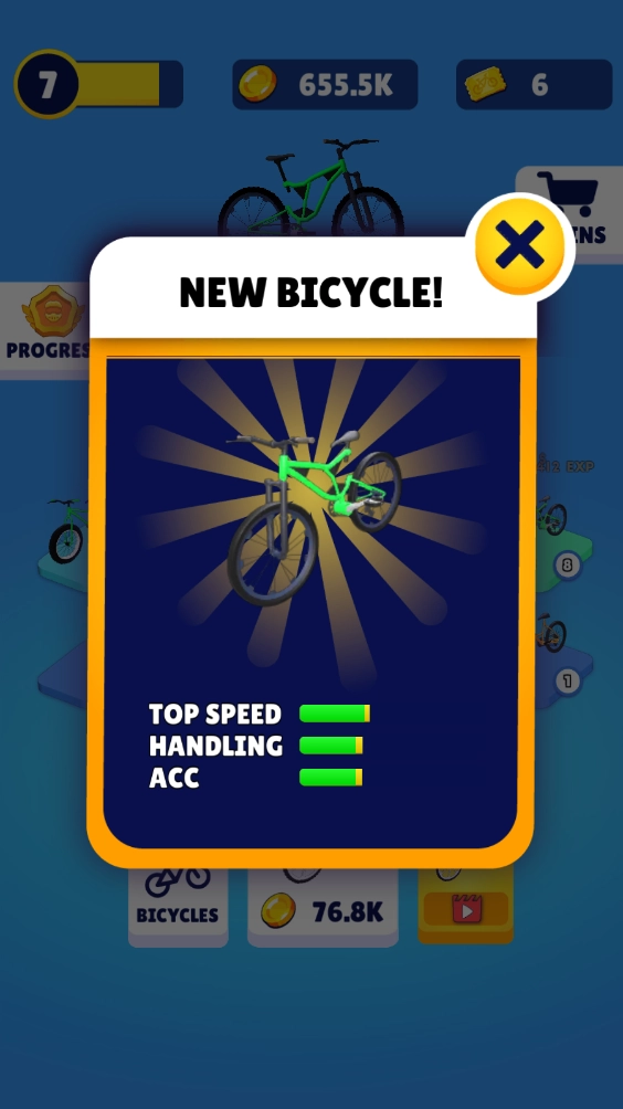 8、拖动相同的自行车就能完成合成,解锁新的自行车。