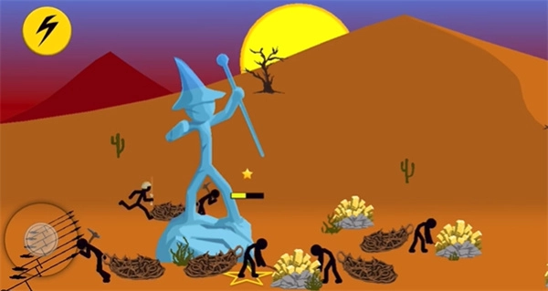 玩家能够操控或指挥火柴人开展进攻行动,同时通过开采金矿来获取经济收入,还可以训练多种类型的火柴人。派出不同的火柴人去攻击敌方的雕像,当任意一方的雕像倒塌时,另一方即获得胜利。此外还有生存模式,在这个模式里,玩家所在的区域会出现大量僵尸,需要在每个夜晚抵御僵尸的袭击,要么坚持到天亮,要么在战斗中牺牲。