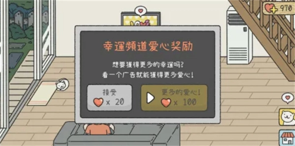 6、最后点击电视,也有一定概率领取到幸运频道的爱心奖励。