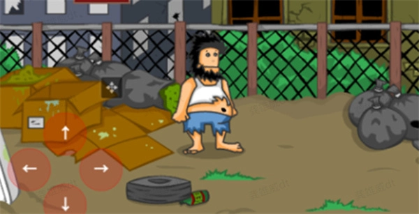 流浪汉在前行的路上会碰到各种各样的阻碍,这段路程看起来好像不长,可你能体验到的玩法却特别多——比如踩到酒瓶摔一跤,被球砸到,被垃圾桶之类的东西砸中,甚至连墙都能砸到你。