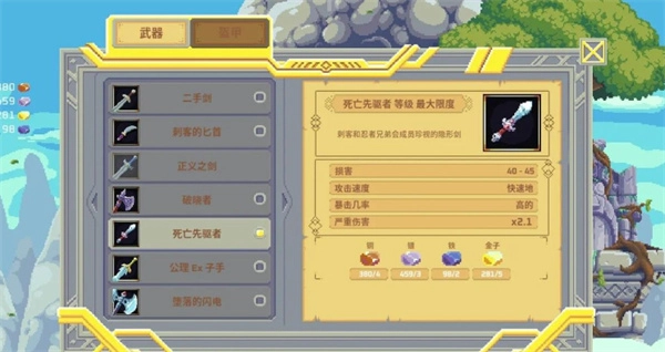 1、其中部分地图设有属性加成选项供玩家挑选。操作上,主要包含移动、攻击与跳跃,且跳跃功能支持二段跳。武器和防具的种类不算多,不过大致在前三关就能全部收集完毕。