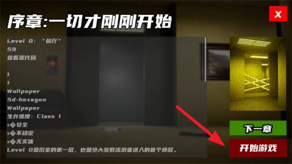 2、接着选择第一章,随后点击右下角的“开始”按钮,即可进入地图界面。