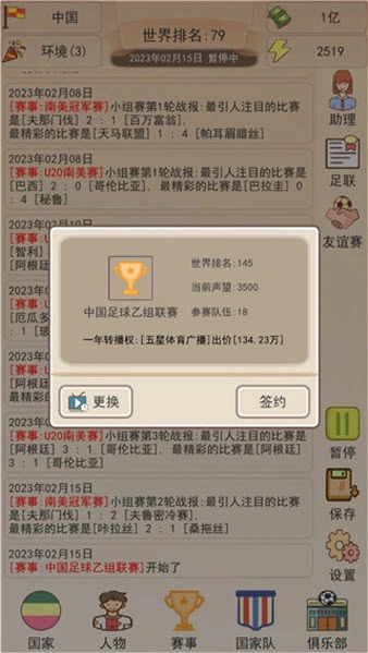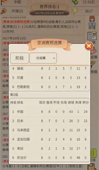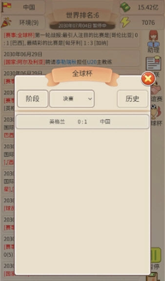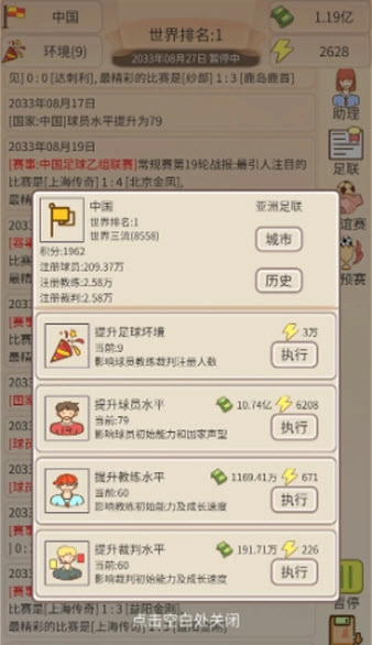 足协模拟器是一款为足球爱好者量身打造的模拟类游戏,玩家将以足协管理者的身份,肩负起带领中国足球冲击世界巅峰的重任。游戏采用文字模拟的玩法,内容十分丰富,玩家需要合理规划足协的各项工作,致力于完善联赛体系、发掘优秀足球人才。每一个决策都可能对整体足球发展环境产生深远影响,热爱足球的玩家绝对不容错过这款佳作。