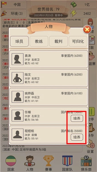 4、在人物中可以培养球员,打造球星。
