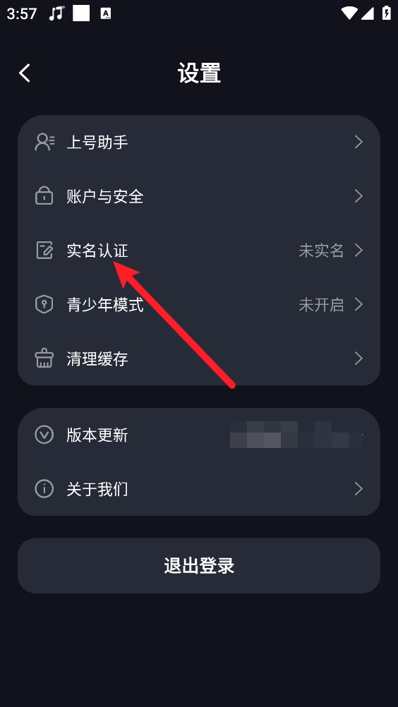 3、如图所示,在设置页面点击"实名认证"。