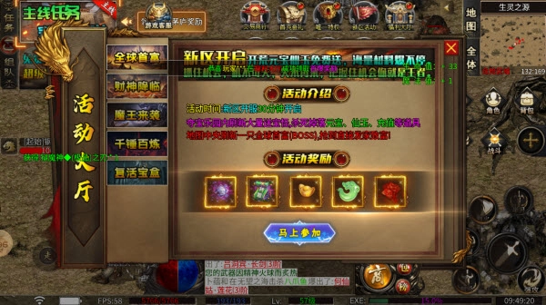 3、新服开启120分钟内:参与《魔王来袭》活动,击杀修炼大魔王,成功将其击败后,即可掉落各类升级材料。