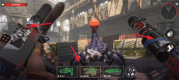 2、左侧的虚拟按键可控制角色移动,同时支持自由切换武器,还能使用手雷对怪物发起攻击。