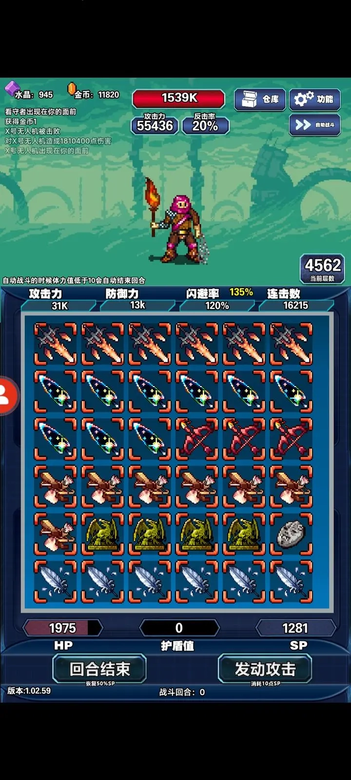 把所有箭都存进仓库,接着开始挑战。当闪避值掉到100以下时,就把箭取出来,直接秒杀BOSS,然后进入下一关继续刷。一直刷到你觉得满意为止。