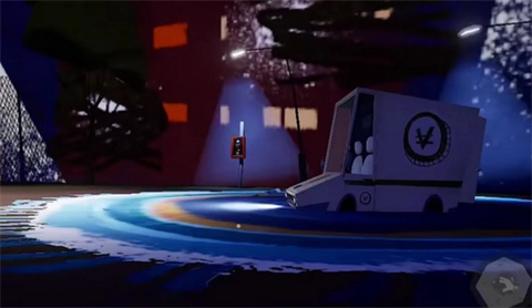 按照路边的提示转动指示牌,就能让运钞车停下。运钞车会停在图中所示的位置,等它停稳后过去取就可以了。不是只有一辆运钞车有(钱袋子),当运钞车从你身边经过时,如果里面有钱袋子,会有箭头提示。