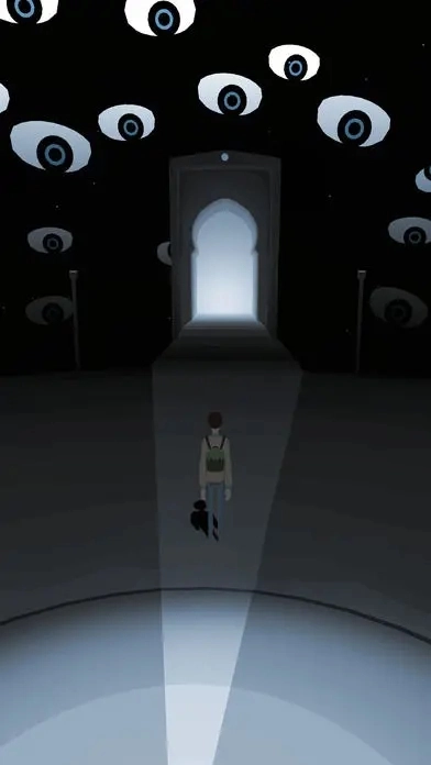1.进入第三章后,主角出现在一处平台上,远方有个白色的影子,他起身便朝着影子的方向追去。跑到前方时,平台中间突然断裂,墙壁上浮现出眼睛,平台也开始改变转动的方向。