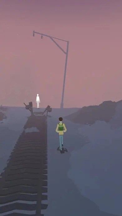 2.一个白色的影子从男主角身上分离出来,男主角为了追回影子,跟着它一同掉落到了一个陌生的地方。现在需要起身观察周围的环境,同时熟悉一下操作方式:点击屏幕能够控制人物移动,此外还可以通过晃动屏幕或者用手指在屏幕上滑动来调整视角。