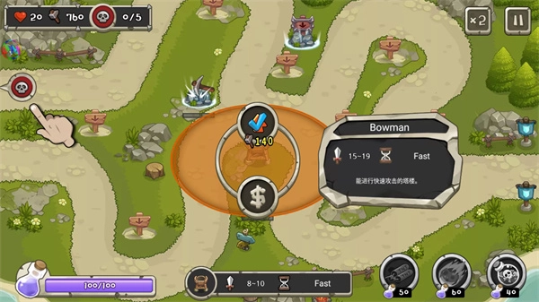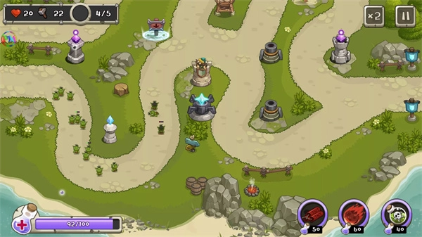 《塔防之王》(又名Tower Defense King)是一款拥有20多张地图的塔防闯关游戏。玩家需在关卡内部署各类防御塔,当敌人靠近时,防御塔会自动发起攻击,核心目标是守护城堡免受敌人侵袭。此外,玩家还能随时释放华丽技能,一次性歼灭大量敌人,助力轻松通关。