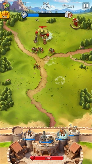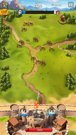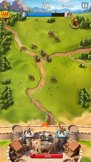 1、关卡前方会涌现大量怪物,玩家需在城堡上布置英雄(如弓箭手),即可实现自动攻击。