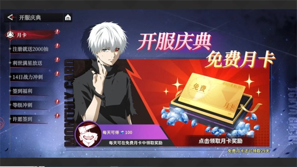 3、活动期间,福利月卡免费送,每天登录就能领取丰厚的钻石月卡奖励!