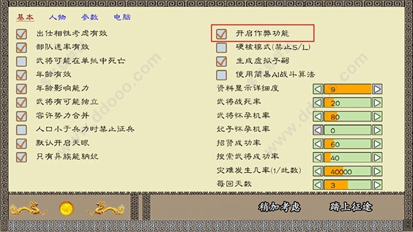 5、年龄有效(默认处于关闭状态,若使用史实剧本建议开启此功能;但251年之后的虚拟剧本请不要开启,否则会导致所有武将死亡)