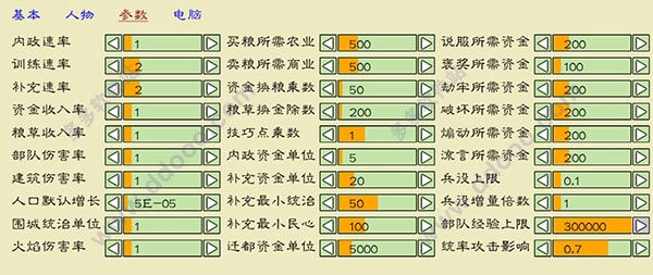 目前设置共分为基本、人物、参数、电脑四个选项卡。